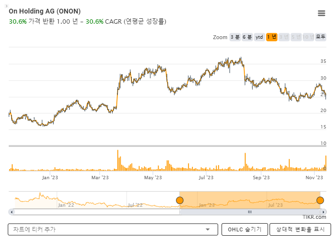 출처 : On holdings IR : https://investors.on-running.com/financials-and-filings/financial-releases/news-details/2023/On-Reports-Results-for-the-Third-Quarter-and-Nine-Month-Period-Ended-September-30-2023/default.aspx