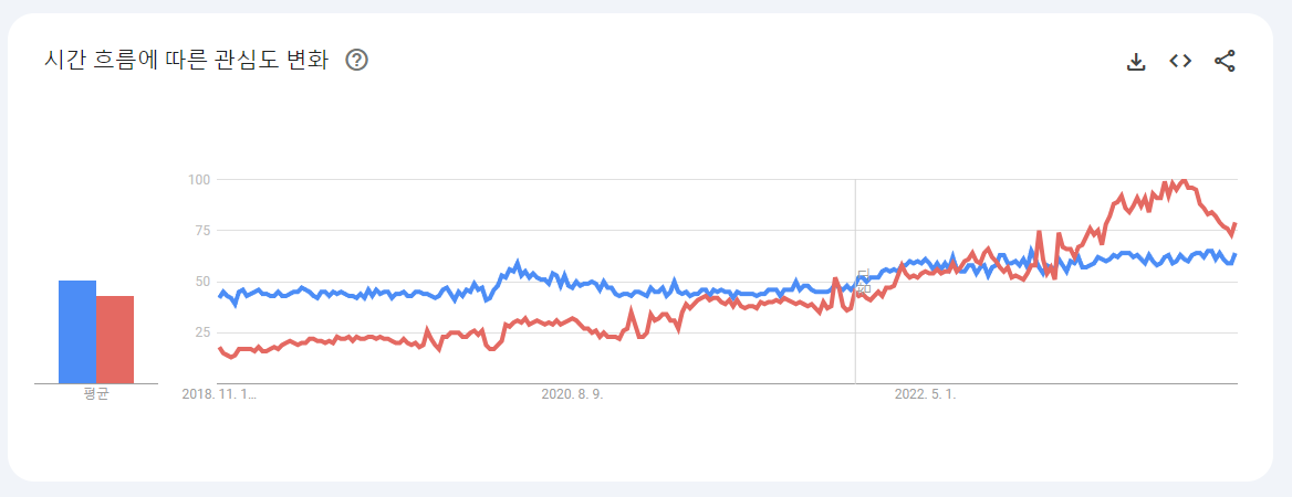 아무튼, 온러닝이 조금 비싼건 사실이고 주가의 흐름도 워낙 기존에 들쭉날쭉해서 언제가 좋은 타이밍인지는 알기 어렵다. 하지만 지속적으로 구글 트렌드에서 올라오고 있고, 회사도 운동화 구독등 다양하게 많은 비즈니스를 전개하고 있다.