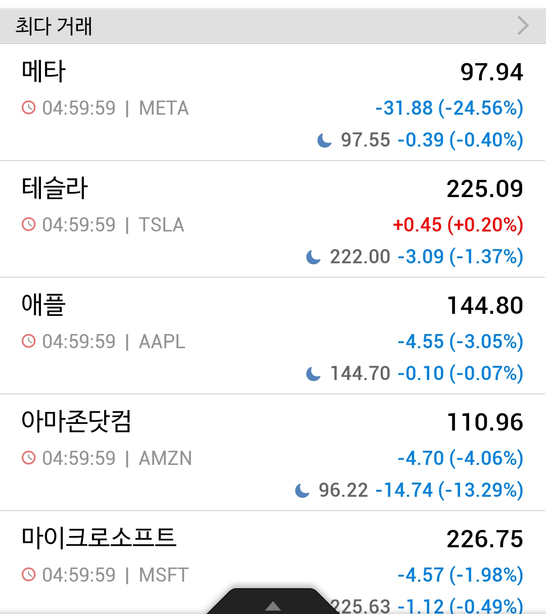 메타, 아마존이 실적발표 후 어닝쇼크에 따라 주가가 큰 폭으로 하락했다.