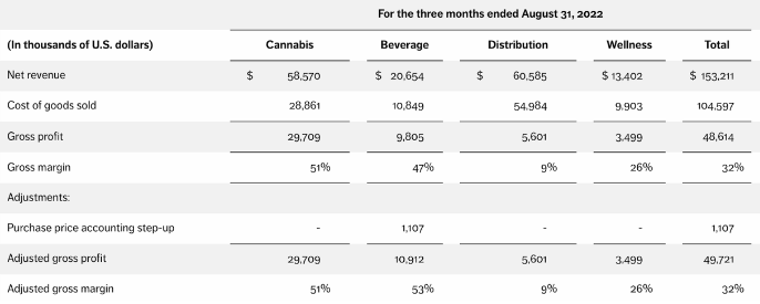 Tilray는 마리화나뿐만 아니라 수익의 반 이상이 주류 등 다른 사업부에서 발생한다. 유통과 웰빙 수익이 대마나 주류에 비하면 총 마진을 내고있다.
