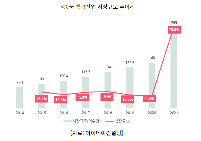 최근에도 중국의 캠핑 인구가 많이 늘어나면서 캠핑 시장이 가파르게 성장하고 있다. 그래서 스노우피크의 중국 진출에 대한 기대가 많이 되기도 하지만, 조금더 생각해 볼 필요는 있다.