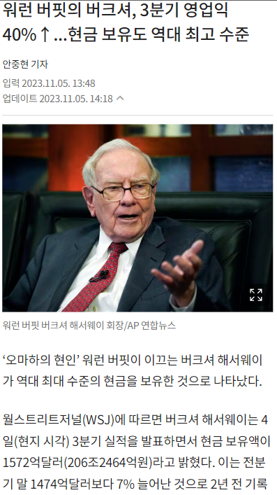 워렌 버핏은 일본(특히 상사)시장에 많은 투자를 하고, 심지어 사무라이 본드도 만들고 있다. 무엇보다 현금을 빠르게 늘려나가고 있다. 버크셔 해서웨이의 현금보유액이 역대 최고라고 한다. 버핏은 무엇을 본 것일까. 지구상에서 자본주의 시장을 가장 오래 경험해본 사람은 어떤 이유로 'Cash is Trash' 라는 이야기에도 불구하고 현금을 늘려나가는 것일까.