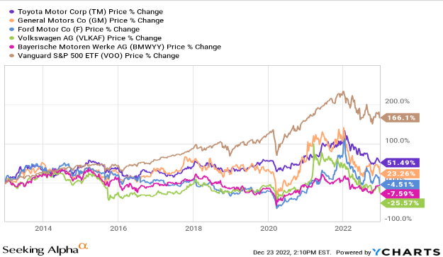 위 그래프를 보자. 10년의 레거시 자동차 제조업체의 가격 변동률이 S&P500 의 변동률보다 모두 적다. 하지만 테슬라가 레거시 자동자 기업의 성장률과 다를 것이라는 근거는 아래와 같다.
