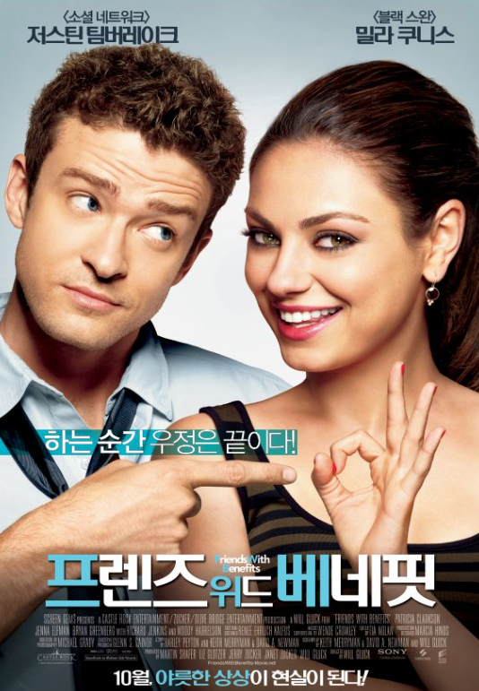 GQ의 아트디렉터로 출근한날 부서 사람들과 인사를 하고 스포츠 편집부인 '토미 (우디 해럴슨)'을 만난다. 토미는 딜런이 아트디렉터에 잘생긴 외모로 게이라고 생각하고 본인과 함께 놀자고 제안하지만 딜런은 게이가 아니라며 토미의 제안을 거절한다. 그러다 사무실로 찾아온 제이미가 고용 관련 서류 작업을 하고 둘은 점심을 먹게 된다. 점심을 먹던 중 서로의 연애사나 개인적인 이야기를 하고 제이미는 뉴욕에 혼자 오게된 딜런을 위해 자신의 친구들을 소개해주겟다며 자신이 여는 파티에 초대해서 딜런을 자신의 친구들에게 소개해준다. 딜런과 제이미는 점점 업무적 관계가 아닌 친구의 관계로 발전하게 되고 어느날 밤 같이 집에서 TV를 보던 둘은 친구 관계를 유지하고 자기로 협의한다. 그렇게 '프렌드 위드 베네핏'의 관계로 발전한 그 둘은 서로 어색해하지만 이내 그 관계를 지속 발전시키기에 이른다. 서로의 소개팅도 응원하고 길거리 헌팅도 같이 나서주기도 한다. 그렇게 어느날 제이미의 집에서 관계를 맺던중 제이미의 엄마 '로나'가 갑작스럽게 방문하고 로나는 둘의 관계를 응원하고 지지해주는 쿨한 엄마다. 어느날 길에서 만난 소아과 의사인 '파커'와 데이트를 하게된 제이미를 딜런은 약간은 묘한 감정을 느끼게 되지만 둘의 관계를 응원해준다. 파커와 제이미는 몇번의 데이트를 이어가며 잘 되어가는듯해 보였지만, 파커가 제이미와의 관계 후 다음날 아침 도망치듯 나가는 모습을 보며 제이미는 상처받게 된다. 그렇게 제이미는 다시 딜런에게 하소연을 하고 딜런은 제이미의 마음을 풀어주는 등 충실한 친구로써의 역할을 한다.
